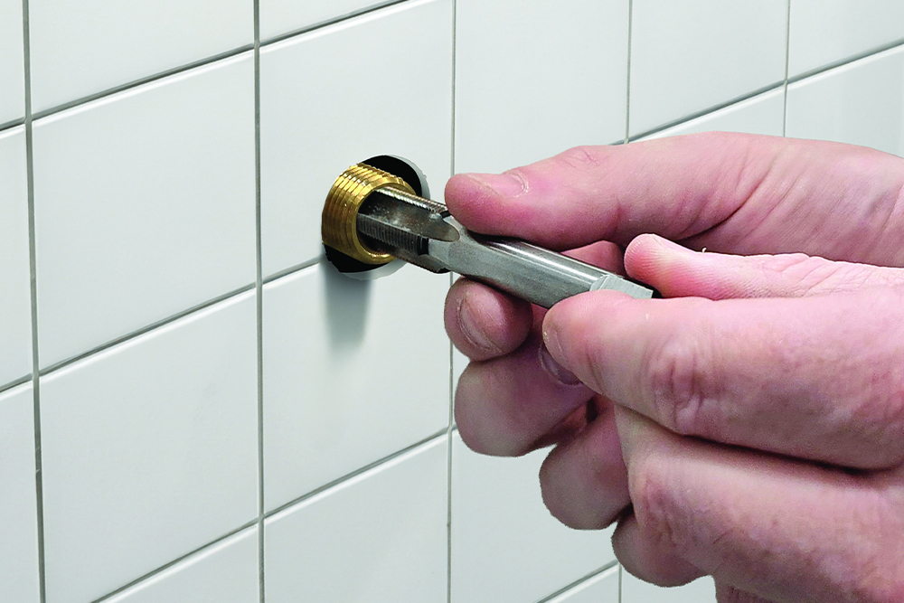 1. Using the provided tap, cut a thread inside the lugged elbow. Taking care to make the thread straight.